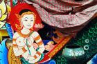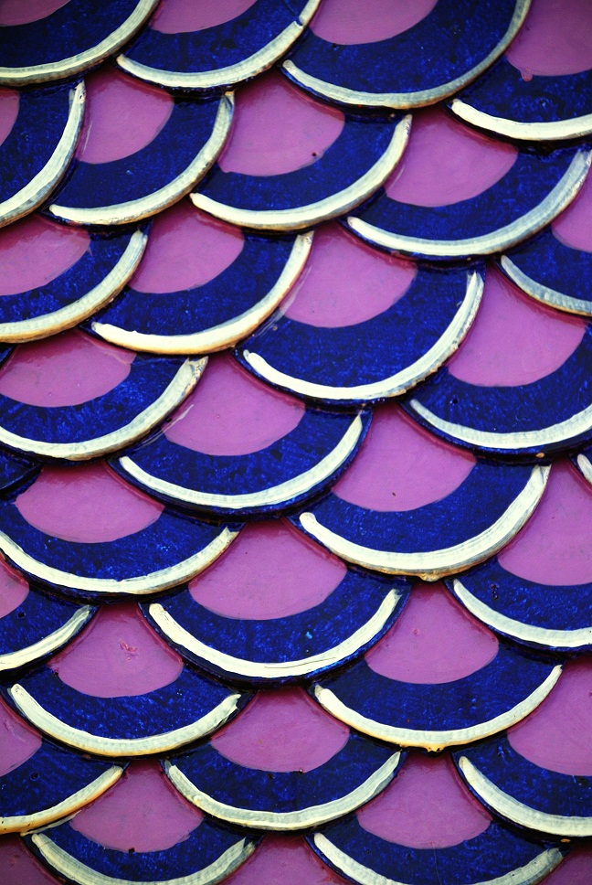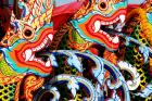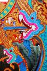 In our trip to Thailand in 2007, we went to Surat Thani in southern Thailand to visit Lucia's mother and brothers who live there. Upon arrival, her brother took us to the local 'boat' festival that was occurring that weekend. There are no boats in the boat festival, even though Surat Thani sits along the ocean. For the 'boat' festival, the Buddhist temples in the outlying provinces build floats that are constructed on trailers and made to look like boats or sea serpents. They are decorated with all sorts of materials that are colorfully painted. The materials are made to look fish scales and feathers, as some of the photographs will show. There were at least 50 floats at the festival and they were lined up in closely spaced rows. Attached to the floats were one or more pots where people could drop Thai Baht coins in. Whenever you put a coin or two in the pot, the priest or nun would sprinkle holy water on you.